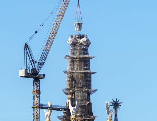 On February 20th, the placement of the final piece of the tower of Jesus Christ signified much more than the end of a construction phase with its traditional flag-raising ceremony. It represented the realization of a dream that survived all kinds of setbacks: when it wasn’t financial constraints, it had to contend with attacks from purists of style and ideology, and even with looting and arson.